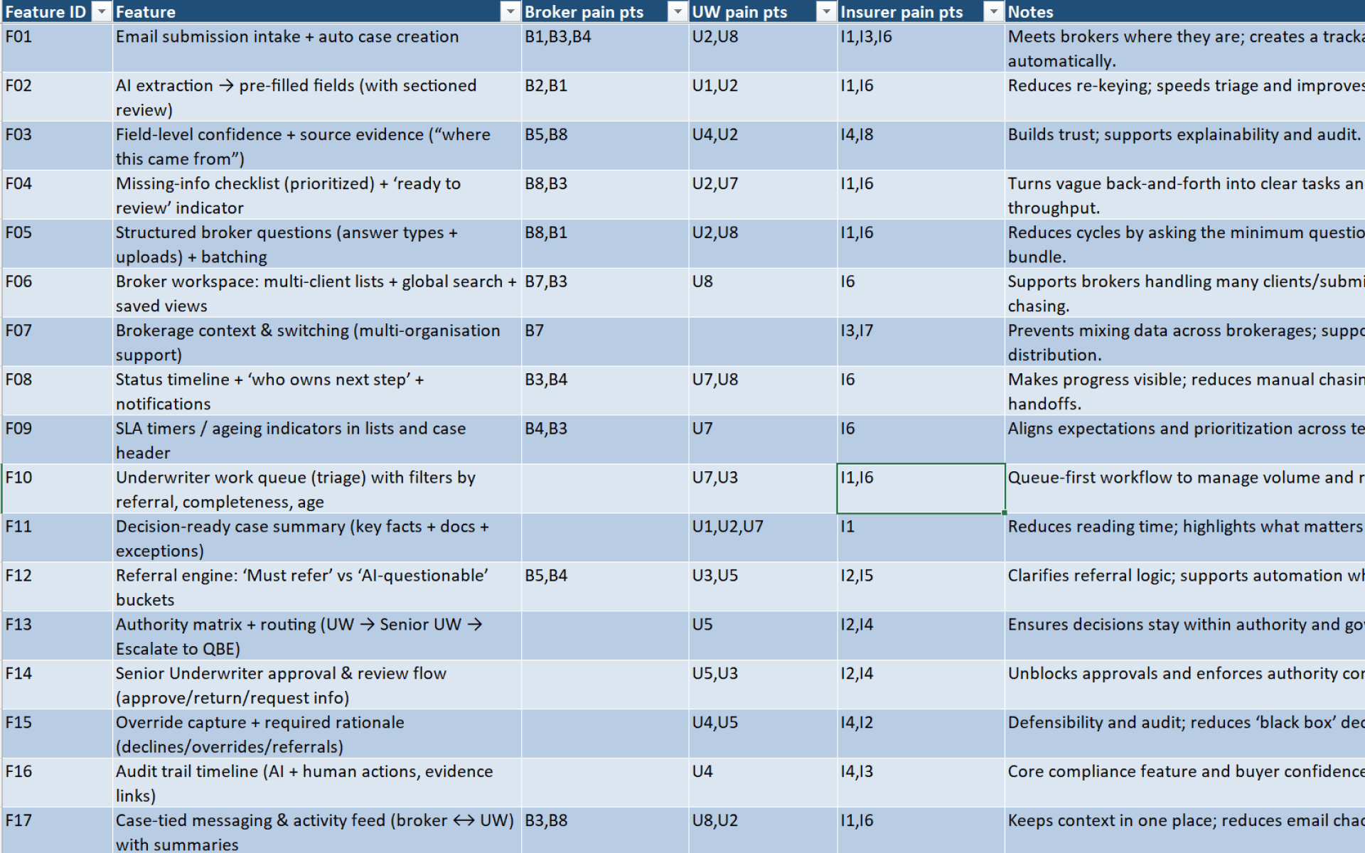 This was core to our submission to quote conversion metric. Every field the broker doesn't have to re-enter, every question they can answer in-line instead of digging through files, is friction removed from top of the funnel.